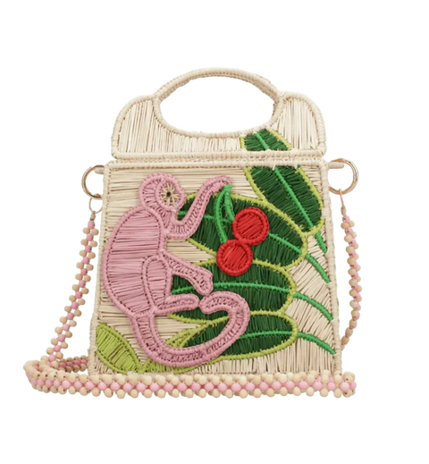 Diseñada por Mercedes Salazar y tejida a mano en rafia por talentosas artesanas colombianas, el Dicha Handbag se distingue por su motivo de mico tejido, un detalle escultórico que aporta identidad y un carácter lúdico al diseño.