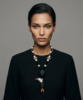 Diseñado por Mercedes Salazar y elaborado a mano por talentosos artesanos colombianos, el Caimán Necklace incorpora un colgante con forma de Tucán tejido que rinde homenaje a la fauna latinoamericana, reinterpretado en una pieza con presencia y movimiento.