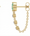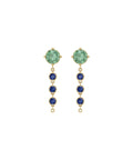 Los aretes Caída Azul combina una esmeralda superior con una línea de zafiros azules en oro 18k, creando un contraste profundo y contemporáneo.