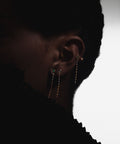 Constelación es un sistema de joyería fina pensado para diseñarse a tu manera. Cada pieza —construida en oro sólido de 18 quilates y piedras preciosas seleccionadas— puede adquirirse individualmente o en par, permitiendo que combines longitudes, formas y brillos para crear tu propio mapa de luz en la oreja.