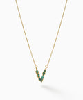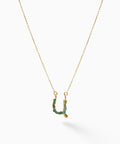 Un collar pensado para el día a día, con un enfoque contemporáneo y preciso: cadena de 45 cm en bronce con baño de oro de 24 k, rematada con un dije de letra (1.5 cm aprox.) y una esmeralda en bruto que aporta textura y contraste. Una pieza ligera, versátil y con un gesto de identidad que complementa cualquier look.