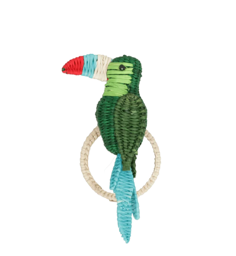 Un set de servilleteros que introduce un detalle tropical y artesanal a tu mesa. Los Servilleteros Tucán están tejidos a mano en fibra de rafia por artesanos colombianos, reinterpretando la silueta y el colorido del tucán en un accesorio de mesa con presencia.