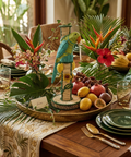 A handcrafted vase that combines natural fibers and a metal frame in a decorative piece with a strong character. The Perico Vase is handwoven from natural raffia fiber and reinforced with a forged steel structure, creating a balance between artisanal technique and contemporary design.