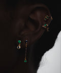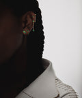 The Green Trio Earrings brings together three emeralds of varying sizes set in 18k gold, creating a vibrant, monochromatic point of light. A versatile stud that can be worn alone or in combination, allowing you to design your own constellation on your ear.