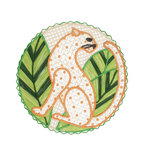 Set Of Natural Placemat - Iraca Hearts (Green)
