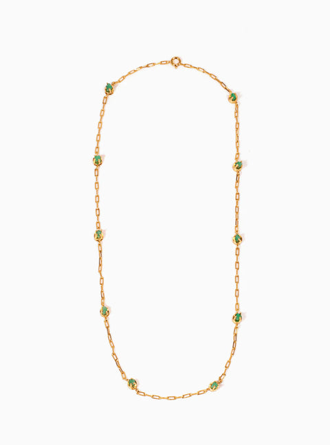 Made in Colombia, this necklace is a contemporary interpretation of Muzo's mineral landscape, a bridge between the tradition of artisanal jewelry and the brand's contemporary aesthetic.