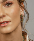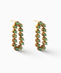 The Round Tennis Earrings reinterpret the classic tennis shoe design through Fenomena's artisanal lens. Handcrafted in Colombia from bronze with a 24-karat gold plating, they combine a contemporary circular silhouette with raw emeralds that retain their natural texture.