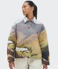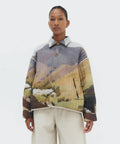 La Chaqueta Arenal reinterpreta los tonos y relieves de la cordillera andina a través de un diseño amplio y estructurado. Confeccionada en algodón suave y acolchado vertical, combina textura, confort y una silueta contemporánea que invita a superponer. El estampado, inspirado en los paisajes del volcán Arenal, se equilibra con detalles en lino y un corte unisex que fusiona arte y funcionalidad.