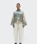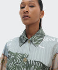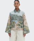 The Bruma Utility Jacket is crafted from durable cotton canvas and printed with an abstract landscape that evokes the rich colors of the Andes. Its relaxed silhouette with full sleeves and front pockets combines structure and lightness, offering effortless elegance that transcends seasons.