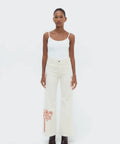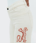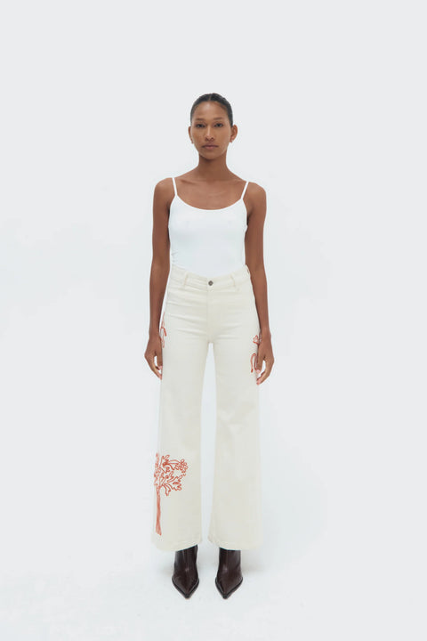 Munay Jeans reinterpret classic denim with a handcrafted approach. Crafted from structured cotton, they feature delicate embroidery inspired by Olga Fisch's original sketches, each stroke evoking the connection between contemporary design and Ecuadorian cultural heritage. Their straight cut and mid-rise waist create a flattering, precise, and comfortable silhouette.