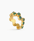 The Fenomena Infinity Ring encapsulates the idea of continuous time and connection to the earth. Crafted from 24-karat gold-plated bronze and set with a raw emerald, this piece reflects the balance of strength and subtlety.